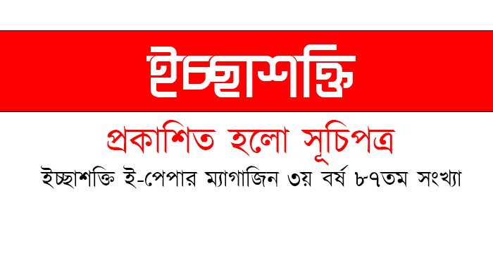 ইচ্ছাশক্তি’র ৮৭তম সংখযার প্রকাশিত হলো সূচিপত্র