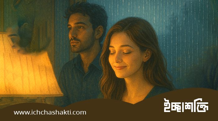 আকাশ কেঁদে চলেছে যেন অদৃশ্য কোনো দুঃখের ভারে। জানালার কাঁচে টপটপ শব্দে বৃষ্টির ফোঁটা পড়ছে — প্রতিটি ফোঁটা যেন অর্পণের হৃদয়ে শব্দ তোলে। ঘরের আলো খুব ম্লান। একটা ছোট্ট টেবিল ল্যাম্প জ্বলছে, বালিশের গায়ে হেলান দিয়ে অর্পণ চুপ করে বসে আছে। চোখে-মুখে বিষণ্নতা, ভেতরে শব্দহীন এক ঝড়।