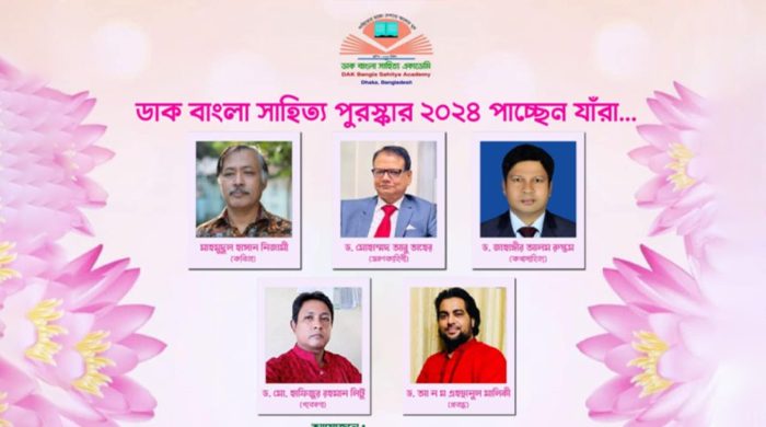 ডাক বাংলা সাহিত্য একাডেমি কর্তৃক আয়োজিত 'ডাক বাংলা সাহিত্য পুরস্কার ২০২৪' প্রদানের জন্য কবিতা, ভ্রমণকাহিনী, কথাসাহিত্য, গবেষণা এবং প্রবন্ধে বিশেষ অবদানের স্বীকৃতি স্বরূপ ৫ জন পাচ্ছেন 'ডাক বাংলা সাহিত্য পুরস্কার ২০২৪'। গত ২৭ অক্টোবর ২০২৪ খ্রি. রোজ রবিবার বিকাল ৪ ঘটিকায় একাডেমি'র কেন্দ্রীয় কার্যালয়ে অনুষ্ঠিত 'ডাক বাংলা সাহিত্য পুরস্কার ২০২৪' কমিটি মনোনীত জুরি বোর্ডের সভায় এই সিদ্ধান্ত নেওয়া হয়েছে। পুরস্কার প্রদানের স্থান, তারিখ ও সময়সূচি পরবর্তী সময়ে জানিয়ে দেওয়া হবে।