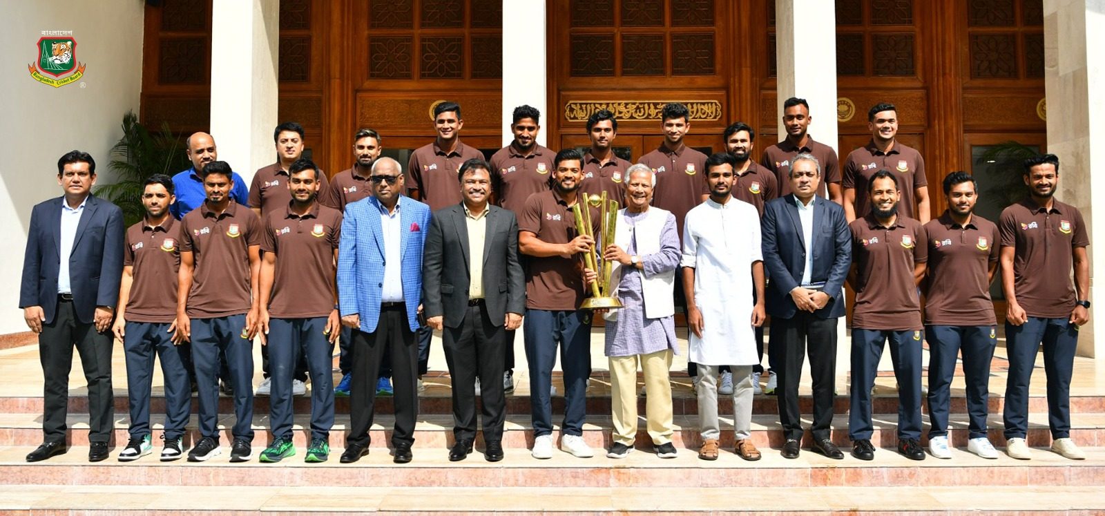 সংবর্ধনা অনুষ্ঠানে ক্রিকেটারদের স্বাগত জানিয়ে ড. ইউনূস জানান, পাকিস্তানে তাদের এই অর্জন ঐতিহাসিক। তাদের অর্জনে গোটা জাতি গর্বিত। জাতির পক্ষ থেকে ক্রিকেটারদের অভিনন্দন জানিয়ে প্রধান উপদেষ্টা বলেন,