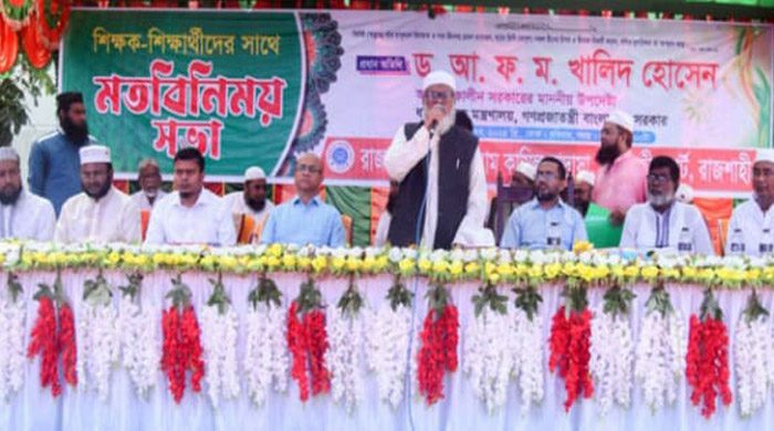 অন্তর্বর্তীকালীন সরকারের ধর্ম বিষয়ক উপদেষ্টা ড. আ ফ ম খালিদ হোসেন বলেছেন, বাংলাদেশে সব ধর্মের লোক তাদের নিজ নিজ ধর্ম পালন করবে, এটা তাদের সাংবিধানিক অধিকার। কেউ তাতে বাধা দিলে আমরা তা প্রতিহত করবো। একটি চক্র বর্তমান অন্তর্র্বর্তীকালীন সরকারকে জনগণের কাছে অগ্রহণযোগ্য করতে চায়। তারা বৈশি^ক মিডিয়াকে বলছে বাংলাদেশে সংখ্যালঘু জনগোষ্ঠী ধর্ম পালনে বাধাপ্রাপ্ত হচ্ছে। আমরা স্পষ্ট করে বলে দিতে চাই, বাংলাদেশে সংখ্যালঘু বলে কোনো শব্দ নেই। আমরা সবাই বাংলাদেশী। রাজশাহীতে তিনদিনের সরকারি সফরের অংশ হিসেবে আজ সকালে দারুসসালাম কামিল মাদ্রাসা পরিদর্শন এবং শিক্ষক-শিক্ষার্থীদের সাথে মতবিনিময় সভায় প্রধান অতিথির বক্তৃতায় তিনি এসব কথা বলেন।