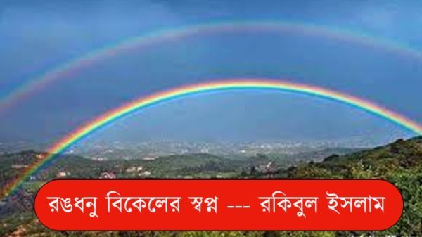 রঙধনু বিকেলের স্বপ্ন। রকিবুল ইসলাম আজ ভোর হইতেই বর্ষা নামিয়াছে। ভারী বর্ষণ যাহারে বলিয়া থাকি তেমনটা নয় আর কি! কথার গৃহ হইতে অফিস দুই কিলো মিটারের মত দূরত্ব হইবে। একখানি
