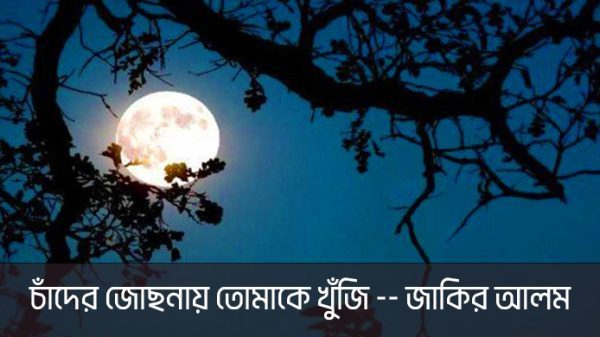 চাঁদের জোছনায় তোমাকে খুঁজি জাকির আলম চৌহালী, সিরাজগঞ্জ। ব্লাক-আউটের রাত। ঝিঁঝিপোকার বিশ্রী শব্দে বিরক্তির মাত্রা চরম আকার ধারণ করেছে। দু’চোখে ঘুম নেই। দূরের মাঠ থেকে ভেসে আসছে শিয়ালের হাঁক।