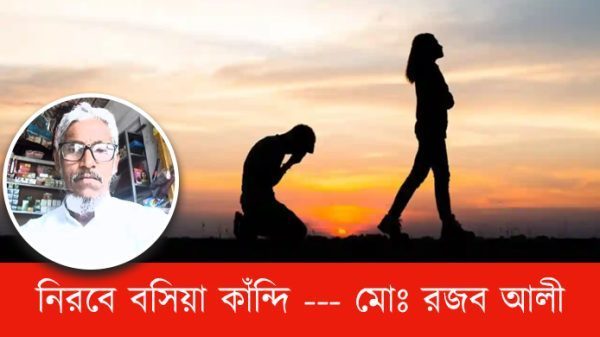 নিরবে বসিয়া কাঁন্দি মোঃ রজব আলী জীবন আমার হইছে আঁধার কে দেয় সেথায় দৃষ্টি? আমার জীবনে তোমার কারণে অন্ধকারের সৃষ্টি। দিয়ে মোরে আশা ভাঙ্গিলে বাসা কেন বা করিলে