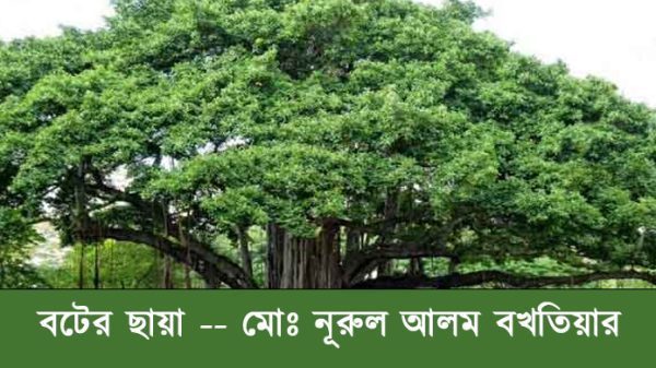 বটের ছায়া মোঃ নূরুল আলম বখতিয়ার ক্লান্ত পথিক পেয়ে খুশি শীতল বটের ছায়া শ্রান্ত দেহ লুটিয়ে বসে মাতৃ স্নেহ মায়া। ভাবছে পথিক বিশাল বটের ক্ষুদ্র অতি ফল সাঝছে