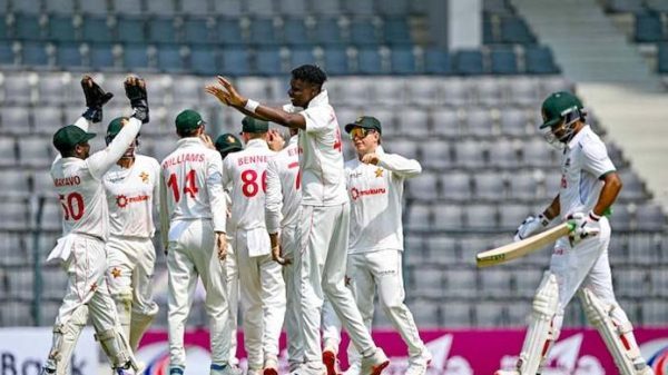 প্রতিনিধিঃ আকাশ দাশ সৈকত সিলেট আন্তর্জাতিক ক্রিকেট স্টেডিয়ামে স্বাগতিক বাংলাদেশকে ৩ উইকেটে হারিয়ে দুই ম্যাচের টেস্ট সিরিজ ১-০ তে এগিয়ে গেলো সফরকারী জিম্বাবুয়ে। এই জয়ে ২০২১ সালের পর লাল