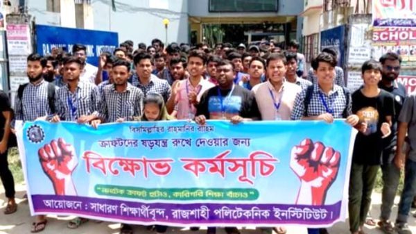 Polytechnic students protested in Rajshahi on six-point demand Representative: Md. Sohail Rana Rajshahi Division Head As part of the central programme, a protest rally was held in Rajshahi on
