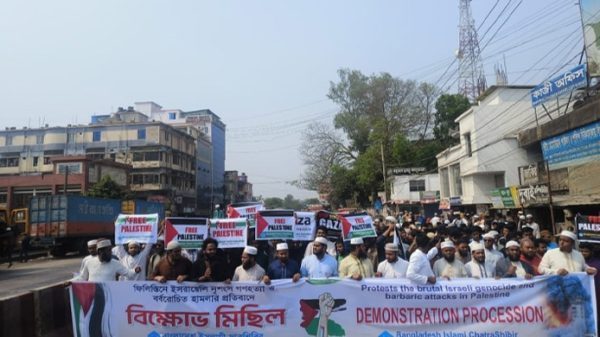 এস এম জাকারিয়া, মীরসরাই ( চট্টগ্রাম ) প্রতিনিধিঃ ফিলিস্তিনী মুসলমানদের উপর ইসরাঈলী নৃশংস গণহত্যা ও বর্বরোচিত হামলার প্রতিবাদে চট্টগ্রাম উত্তর জেলা ছাত্র শিবিরের উদ্যোগে বিক্ষোভ মিছিল ও তৎপরবর্তী পথসভা অনুষ্ঠিত হয়েছে।