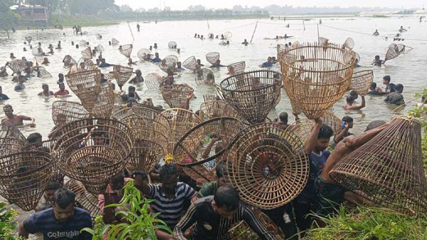 প্রতিনিধিঃ সামাউন আলী, নাটোর। চলনবিল অধ্যুষিত নাটোরের সিংড়া উপজেলায় ঐতিহ্যবাহী ‘বাউত উৎসবে’ মেতেছেন শৌখিন মাছ শিকারিরা। অনেকে ‘পলো উৎসব’ নামেও চেনেন। কুয়াশা ঢাকা ভোরের হিমেল হাওয়া জানান দিচ্ছে শীতের