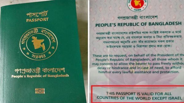 প্রতিবেদক: আব্দুল মুহিত ইচ্ছাশক্তি আইডি নংঃ 0020220424 বাংলাদেশের পাসপোর্টে আগে লেখা থাকতো- ‘দিস পাসপোর্ট ইজ ভ্যালিড ফর অল কান্ট্রিজ অব দ্য ওয়ার্ল্ড এক্সেপ্ট ইসরায়েল।’ অর্থাৎ এই পাসপোর্ট ইসরায়েল ব্যতীত