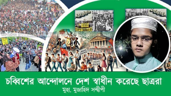 চব্বিশের আন্দোলনে দেশ স্বাধীন করেছে ছাত্ররা মুহা. মুজাহিদ সন্দ্বীপী চব্বিশের এই আন্দোলনে এদেশ স্বাধীন করল আমাদের ছাত্র ভাইয়েরা। শত শত মায়ের কোল খালি হলো, শুধু এই স্বাধীনতাকে ফিরে পাওয়ার