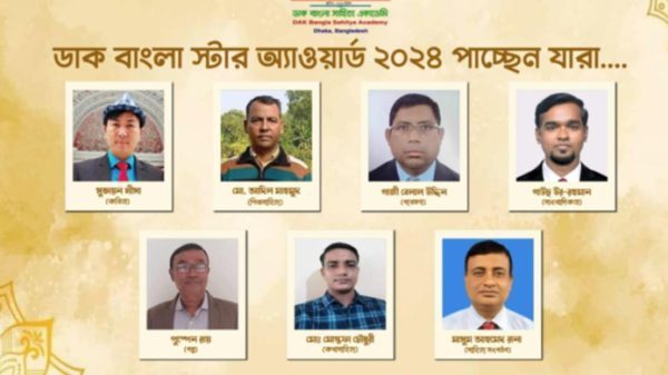 ডেক্স রিপোর্টঃ এস এম দেলোয়ার জাহান ডাক বাংলা সাহিত্য একাডেমি কর্তৃক আয়োজিত ‘ডাক বাংলা সাহিত্য পুরস্কার ২০২৪’ প্রদানের জন্য কবিতা, ভ্রমণকাহিনী, কথাসাহিত্য, গবেষণা এবং প্রবন্ধে বিশেষ অবদানের স্বীকৃতি স্বরূপ